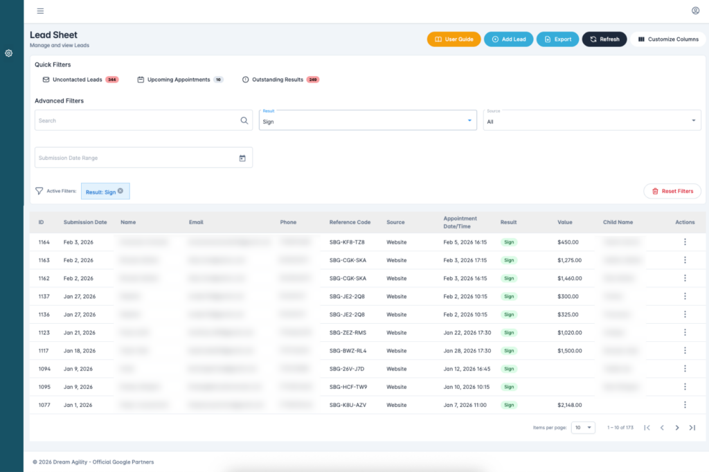 Never lose track of a lead again with our Platform Lead Sheet. It’s not a replacement for your CRM, it manages the last mile from lead to sale. We call it Lead Management Optimisation.